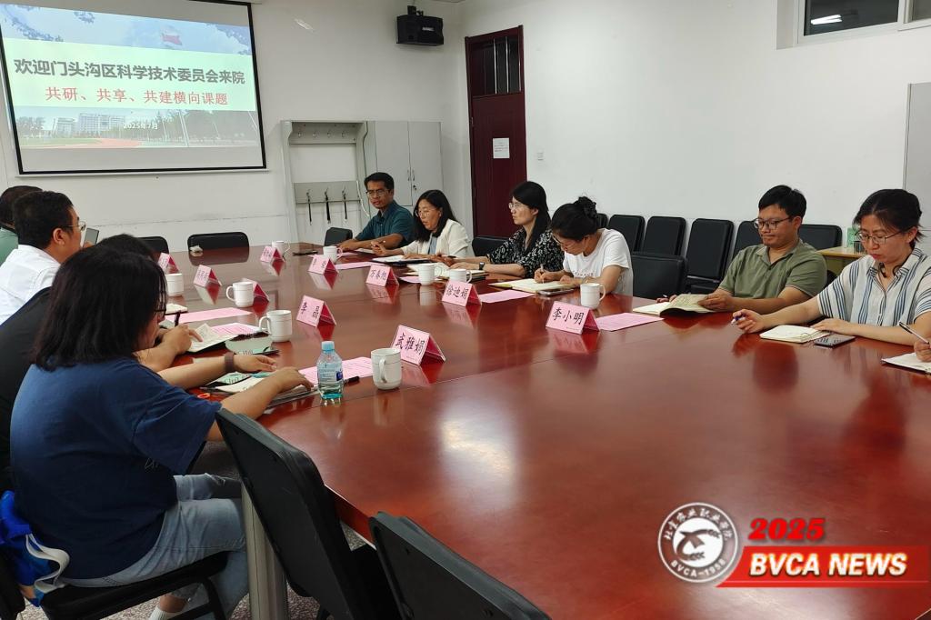 万春旭对北京市门头沟区科技委员会的来访表示欢迎,详细介绍学院在智慧农业领域的学科特色、资源优势以及服务京西南地区的典型案例做法。王伟宾分享了门头沟区农业发展和农业科技创新的现状,阐述了在农村农业现代化改造中的具体需求。