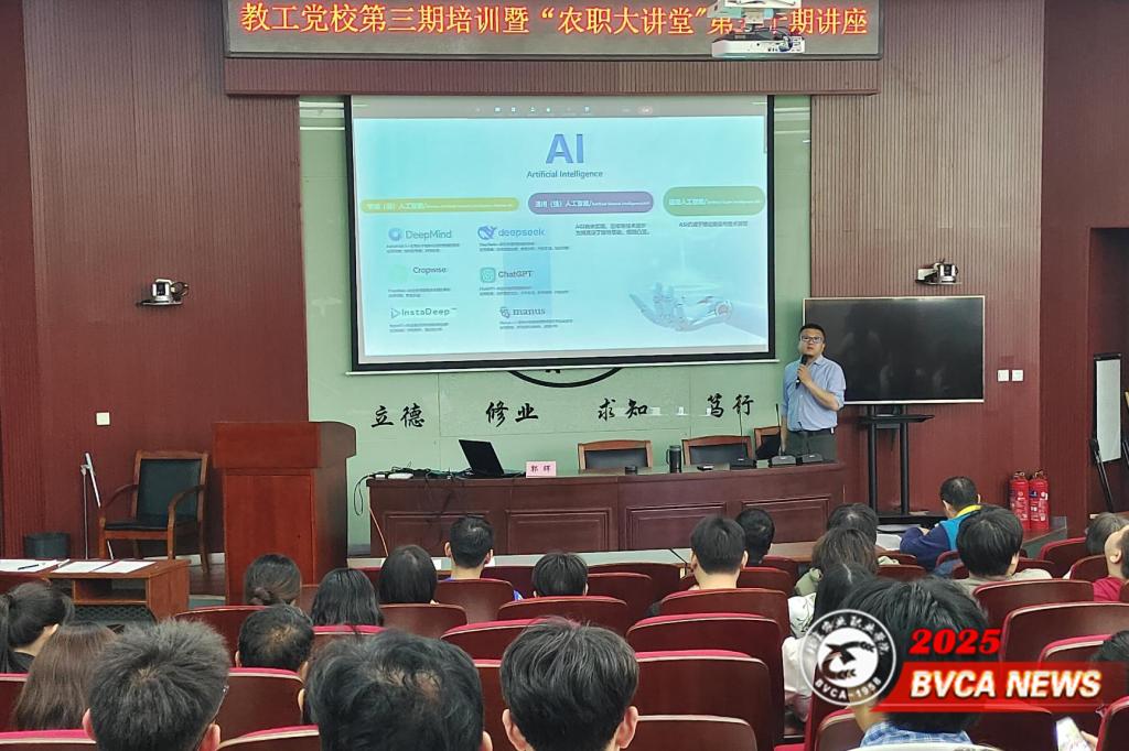 4月29日,学校在长阳校区教研楼一层报告厅举办教工党校第三期培训暨“农职大讲堂”第三十期讲座,智慧农业工程学院副教授郭辉做了题为“AI驱动田野革命:农业机器人技术前沿与人工智能创新”学术报告,报告会由智慧农业工程学院曹旻罡主持。