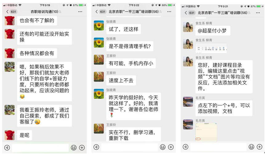 在培训期间,老师们秉承互帮互助的原则,通常一个问题出来,有3、4个人帮忙解答,有使用熟练的老师解答问题相当专业,甚至成为“半个客服”。大家学习热情高涨,为即将到来的线上教学打好扎实的基础。