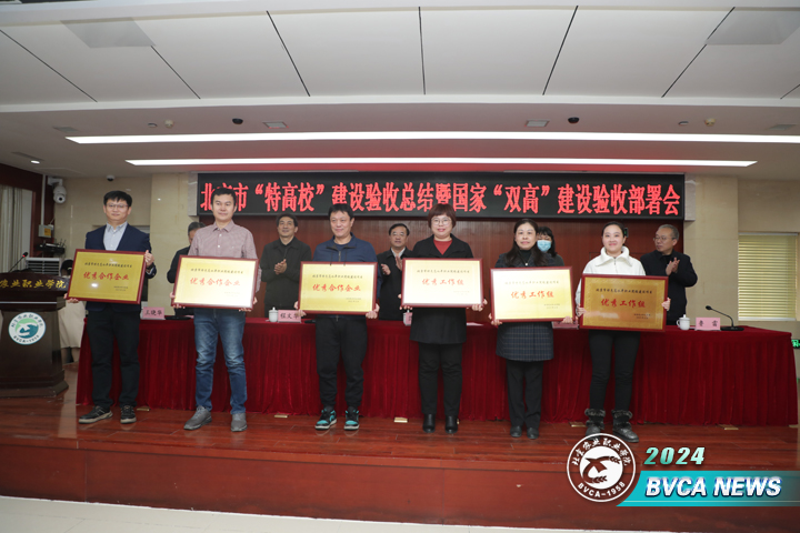 李俊英同志宣读了“特高校”建设验收表彰名单,都市园艺专业群等六个团队荣获优秀项目团队称号,数据填报组等三个工作组获评优秀工作组称号,首农西郊农场等3家企业获评优秀合作企业称号,44名同志获评“特高校”建设验收先进个人。