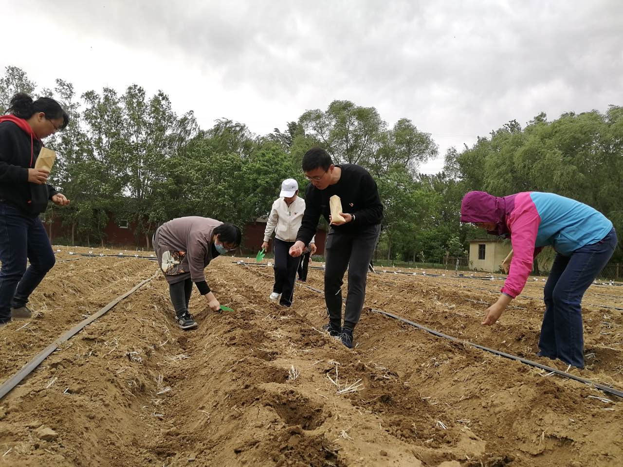 科研处全体党员在支部书记郝婧同志带领下,在园艺系南繁团队教师指导下,精耕细作,严格按照操作要求,对拟参加区域试验审定的玉米新品种进行播种,保障播种符合规范,出苗整齐一致。