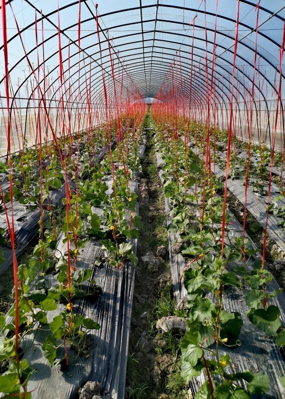 今年基地温室大棚建成并交付使用,这为扩展南繁育种作物的种类,优化种植格局奠定了基础,同时也提升best365同其他兄弟院校同行业之间的科研竞争力。厚皮甜瓜及可食用菊花的南繁基地种植当属best365首次。李志强、王路老师来到南繁基地后,及时观察棚内瓜苗长势,结合前期的调查数据对今年厚皮甜瓜的结瓜情况、病虫害管控程度及产量做出了预判,两位老师一到达基地,就开始了对棚内瓜秧进行绑蔓、整枝等工作,并及时进行生长期数据的采集工作。为了提高花粉质量,严格控制授粉时间,需在上午8-10之间进行授粉工作,其他时间穿插进行幼瓜套袋以防止重复授粉。