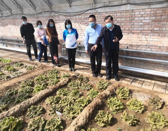 范双喜同志在听取了科研处处长郝婧、园艺系主任李志强、实训中心主任李志莲等同志在当前一手抓疫情防控一手抓南繁科研项目工作开展的基本情况介绍后,与园艺系南繁育种准备和生菜品种示范项目科研团队人员进行了交谈与沟通。对生菜品种示范的科研实施工作进行了现场指导。