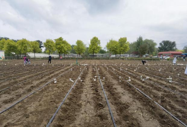 经过实训中心老师协同安排,播种用地通过翻地、旋耕、撒肥,安装喷带等准备,很快达到播种要求。
