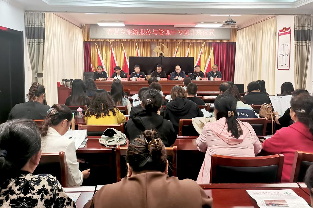 9月14日,香营乡旅游中专班开班仪式暨红色教育第一课在香营乡文体中心拉开帷幕。来自香营乡、区教委、延庆农业广播电视学校的相关领导出席,旅游服务的新学员及家政、计算机中专班老学员共50余人参加了此次活动。