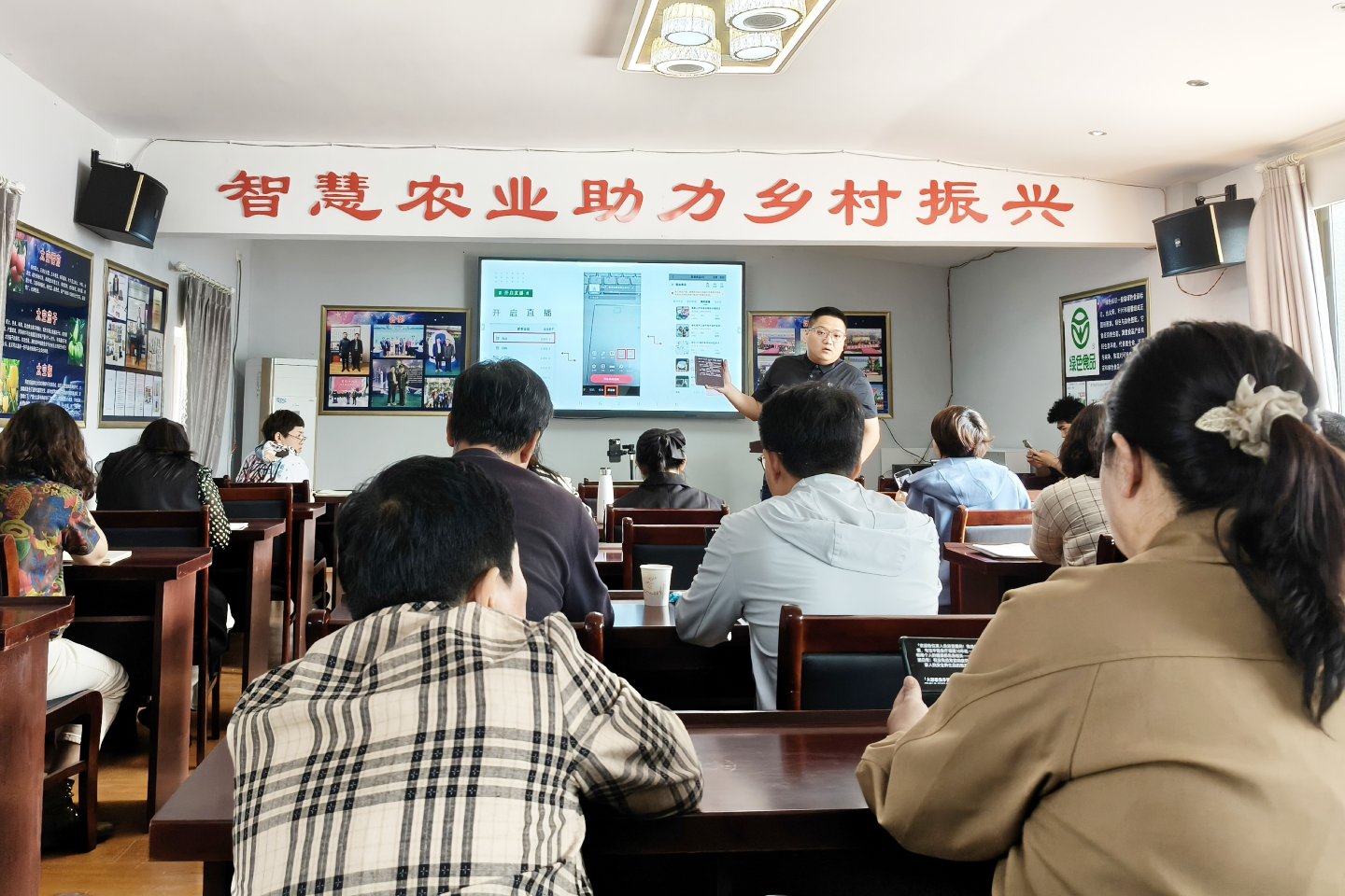 本次培训旨在助力学员掌握直播获客技巧,熟练运用直播平台拓展农产品销售渠道,将优质农产品推向更广阔市场。担任此次实践教学活动的是五彩九渡直播基地的崔家儒老师及其团队。培训采用理论与实践紧密结合的方式,实战演练是其重点。培训现场搭建了专业直播间,学员们进行分组直播实操,讲师和助教在旁悉心指导,及时施策优化直播效果。