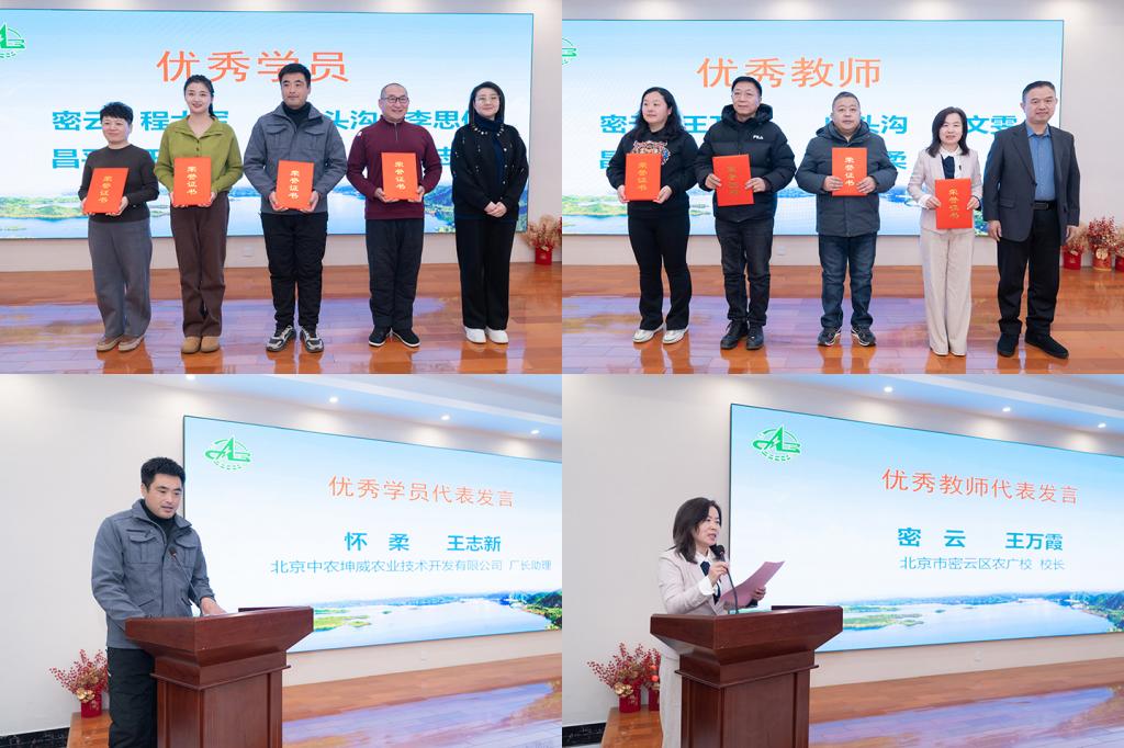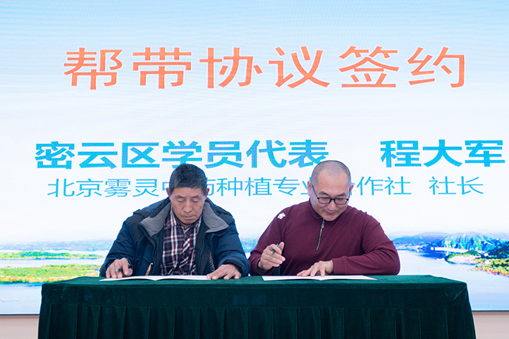大会表彰了优秀学员和优秀教师,怀柔区优秀学员代表王志新、密云区优秀教师代表王万霞先后发言,分享学习感悟与工作体会。学员代表程大军与帮扶农户现场签署帮带协议,以技术共享、经验互鉴带动农户共同发展。