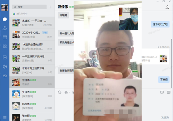 由于受到新冠肺炎疫情影响,本次转段考核的面试工作采取企业微信视频网络进行,水利专业杨林林、韩敏琦、樊慧菊担任本次面试的考官,涉及转段考核两个班共计48名考生按照学号顺序,分别于上下午完成面试考核;给排水工程技术专业吴小苏等5位教师都参加,面试采用企业微信视频会议单个学生形式,面试内容主要是自我介绍、中职阶段学习情况介绍与进入高职后的学习规划等,每个学生的面试时间不超过15分钟。建筑工程技术专业由张昊等4名教师参加在线视频面试。