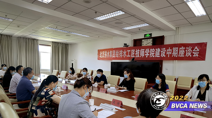7月14日下午,北京排水集团人力资源部部长刘大爽、副部长江婷、公共服务与培训中心副主任赵颖等一行6人来院,就北京排水集团给排水工匠技师学院中期检查情况和后期建设事宜进行座谈,院领导王晓华出席。教务处、水利与建筑工程系相关同志参加座谈会。