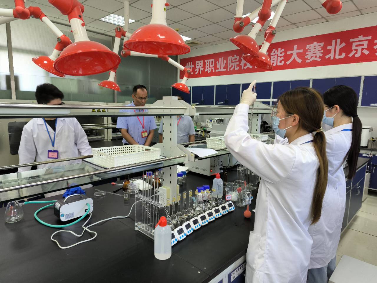 为确保赛事公平公正,组委会特邀中国医学科学院、北京石油化工学院、北京农学院以及康龙化成(北京)新药技术股份有限公司等单位的九位行业专家组成裁判团队。评分体系严格参照世界职业院校技能大赛标准,从技能水平、职业素养、应用价值、团队协作及创新创意等多个维度进行综合评价,同时兼顾操作规范、安全意识和环保要求。