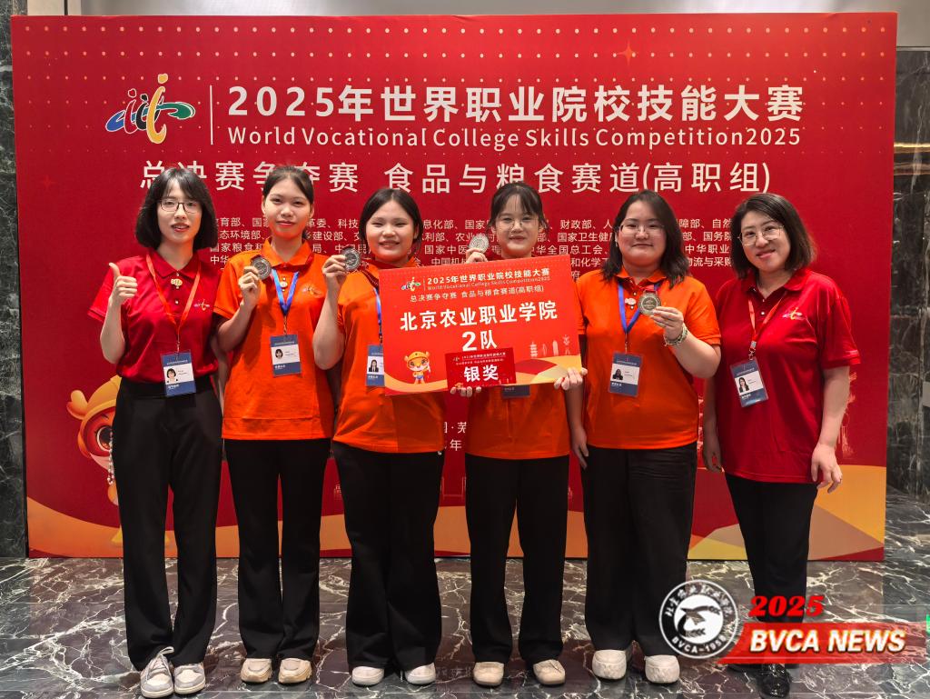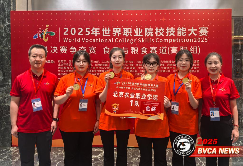 在食品与粮食赛道(高职组)比赛中,由王辉、潘妍两位老师指导,罗紫涵、冯琪、王智璇、张瑜四名同学组成的参赛1队凭借扎实的专业功底、默契的团队协作和稳定的临场表现,勇夺金奖,实现学校在该赛道金牌“零的突破”。