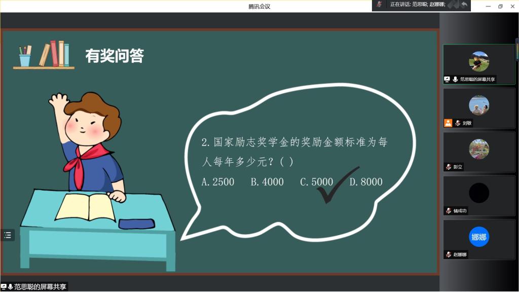 活动中,范老师首先向同学们强调了党和国家对学生资助工作的高度重视,讲述了国家和学校的资助体系和资助政策。随后向学生们强调诚信和守住诚信的意义,强调国家以及高校对贫困学生给予的资助,是帮助家庭闲难学生完成学业的重要途径,同学在享受国家给予的这些福利的同时也要在学生中起到表率作用。活动最后,采取了有奖问答形式进一步加深了学生对资助政策的了解。