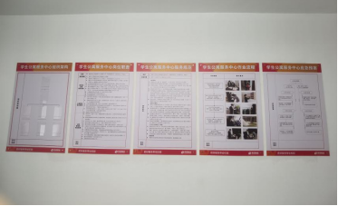 为更好的展现学院四校区宿舍管理标准化,统一化管理模式, 8月10日,在各公寓楼内张贴禁止吸烟、禁止使用违禁电器安全警示标识,在各公寓楼值班室张贴了五图表,五图表包含学生公寓组织架构、岗位职责、服务规范、工作流程、应急预案等规范完善学生公寓的管理。