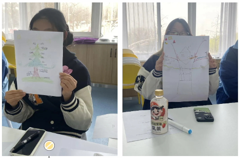 “绘制生命树”环节,同学们认真作画,呈现出的每一棵生命树都独一无二,生命树代表着一个人的成长、家庭、梦想、友谊和成就。通过小组分享和展示,启发大家不断地思考,该如何让生命之树更加茂盛而富有生命力。