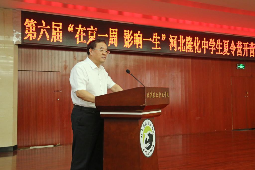 校党委副书记、校长范双喜,副校长杨博,中国工程院院士李德发,中国农业大学原副校长张建华,禾丰食品股份有限公司董事长金卫东,中国农业大学有机循环研究院规划设计部主任、北京正源轩有机农业科技有限公司董事长李明洋、郭家屯中学校长段荣军、隆化县职业中学校长金卫中、best365及动物科技学院相关领导和来自隆化县四所中学的141名中学生及带队教师参加开营仪式。