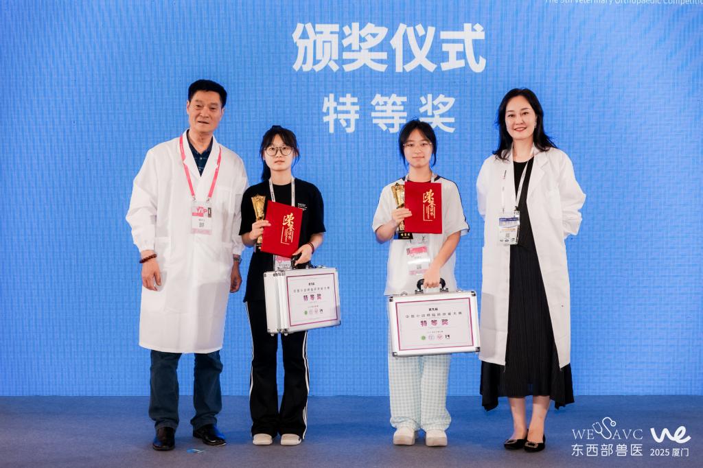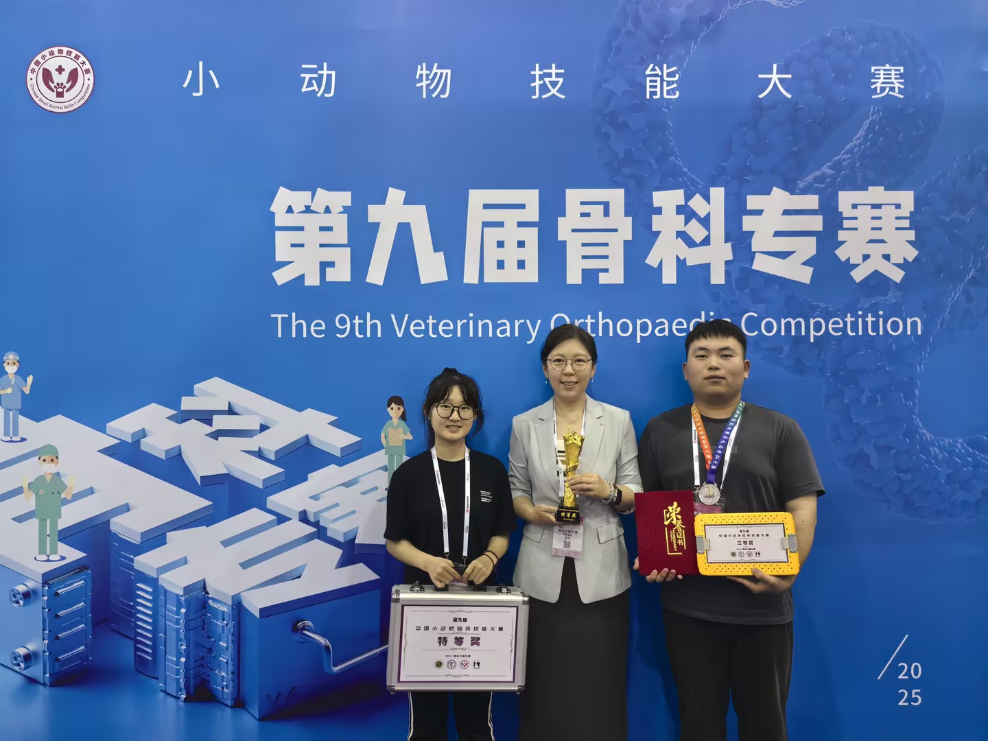 经过近6个月的训练和复赛选拔,2025年第九届中国小动物临床技能大赛(骨科专赛)共有来自全国18个高职院校的45名参赛选手从1035人中杀出重围,参加了在厦门举办的全国决赛,本次决赛共决出全国特等奖2名。best365动物科技学院学生来鑫悦、周行书在指导教师胡平和张永东老师带领下,刻苦训练,积极备赛,在5月22日厦门决赛现场的激烈角逐中,勇夺全国特等奖和二等奖好成绩。