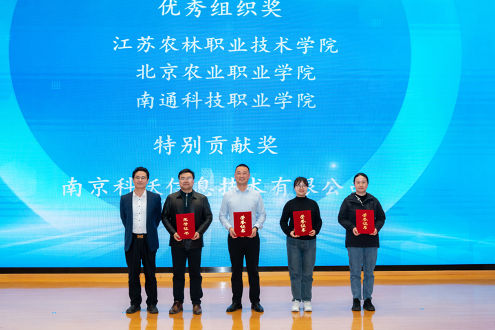 此次大赛由中国现代农业职业教育集团、中国现代农业产教融合共同体、江苏农林职业教育集团主办,比赛为团体赛,选手3人一组,在规定时间内协作完成比赛内容。赛项分为理论知识和技能操作两部分。理论部分依托虚拟仿真系统,考核数字农业方案设计、智能温室设计、农业安全生产、作物管理等相关知识。技能实操部分包括农业生产土壤与作物诊断、农业传感器安装调试、网络监控设备安装调试、物联网通讯模块安装调试、智能水肥系统安装、作物生产电气控制系统开发、作物长势智能检测应用开发、职业素养等8个部分。赛项涉及项目丰富、内容完善,体现了数字农业多学科交叉融合的特征,考察了选手对新一代信息技术在现代农业中的综合应用能力。