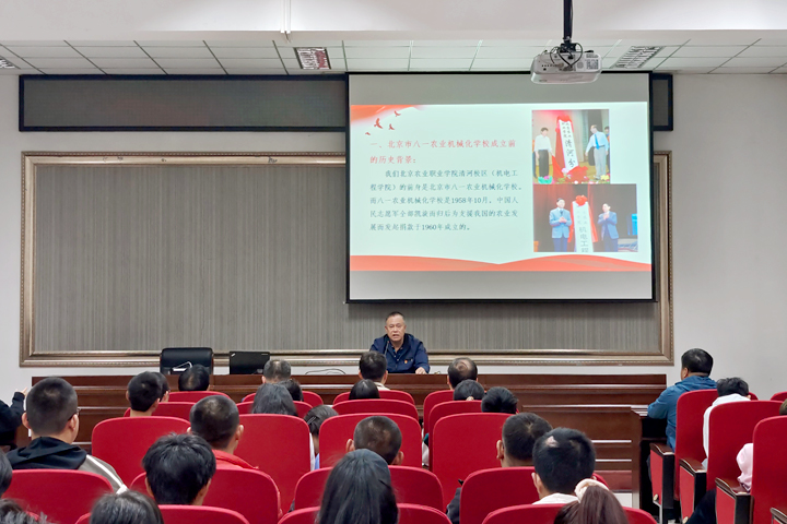 最后,李福田老师结合自己在学校学习、工作40余年亲身的经历,讲述自己的感悟,并对同学们提出了不能忘记建校初心,弘扬抗美援朝精神,要学农知农爱农,为服务国家乡村振兴战略努力学习技能本领的希望。