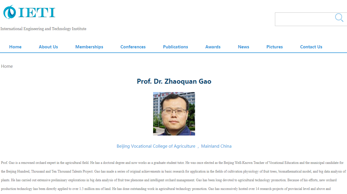 近日国际工程技术协会在线公布了新入选会员,我系高照全老师成功入选http://www.ieti.net/memberships/Members.aspx)。国际工程技术协会 (IETI) 成立于2015年,目前拥有6位诺奖得主、2位图灵奖得主、2位沃尔夫奖得主、1位菲尔兹奖得主、1位麦克阿瑟天才奖得主、2位约翰贝茨克拉克奖得主、1位奥斯卡奖得主、1位费萨尔国王奖得主、100多位院士、30多位IEEE Fellow、10余位ACM Fellow,核心成员覆盖五大洲顶尖高校。IETI以工程科学应用、技术科学创新、社会可持续发展为目标;以通识教育为愿景,促进自然科学、工程科学、社会科学协调发展。高照全老师多年以来围绕农业智能化发展方向持续开展技术攻关,在果树表型、信息化管理等方面取得一系列开创性研究,受到国际同行的高度认可。园艺系近年来围绕现代都市型农业产业需求和双特高建设,不断加大对教师的培养力度,高老师成功入选国际工程技术协会 (IETI)会员是我系双特高建设的又一新成果。(园艺系)