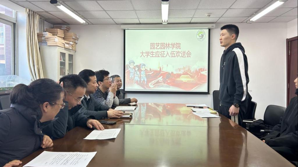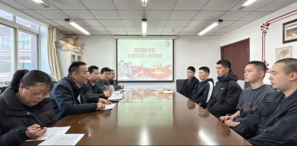 2024年3月8日上午,园艺园林学院在园艺楼302会议室举行了2024年春季送兵会,欢送园艺园林学院6名学子光荣入伍。院长李志强、副院长吴晓云、办公室主任武晋、班主任和辅导员代表参加会议,会议由党总支书记赵永军主持。
