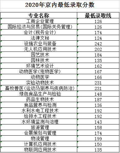 2020年京内录取分数线(语数英三科成绩)