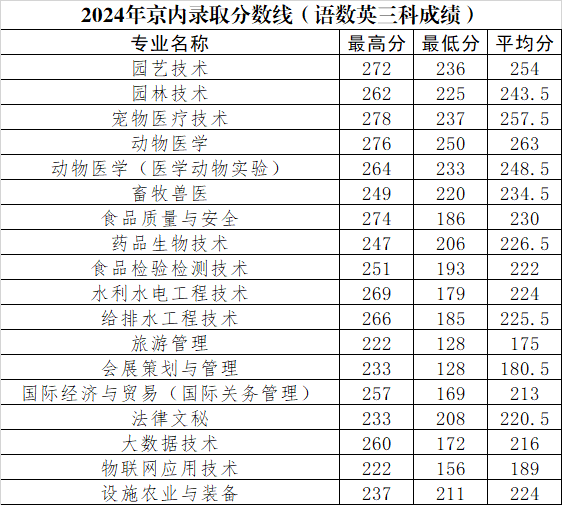2024年京内录取分数线(语数英三科成绩)