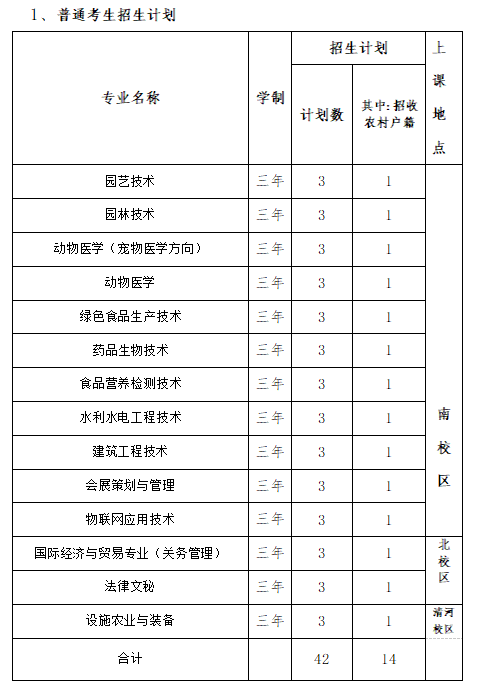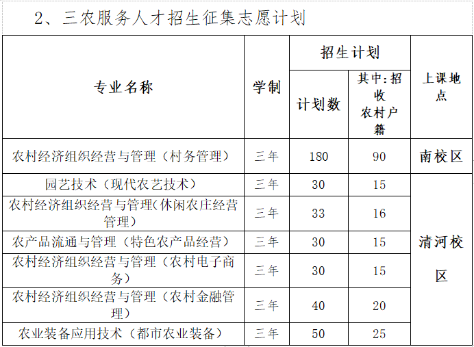 根据北京实际需求,结合新农村发展要求和考生特点,调整相应专业计划面向考生招录。具体如下: