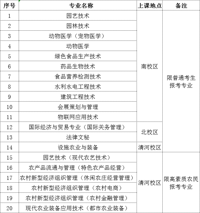 序号1-14为普通高中毕业生(同等学力)报考专业。